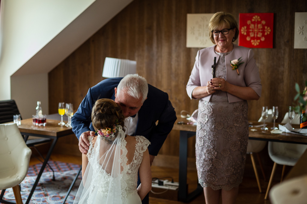Wzruszające przemowy, podziękowania i uściski były następne. Piękny pierwszy taniec Państwa Młodych udało też się wcisnąć. Uroki fotografii ślubnej 🙂