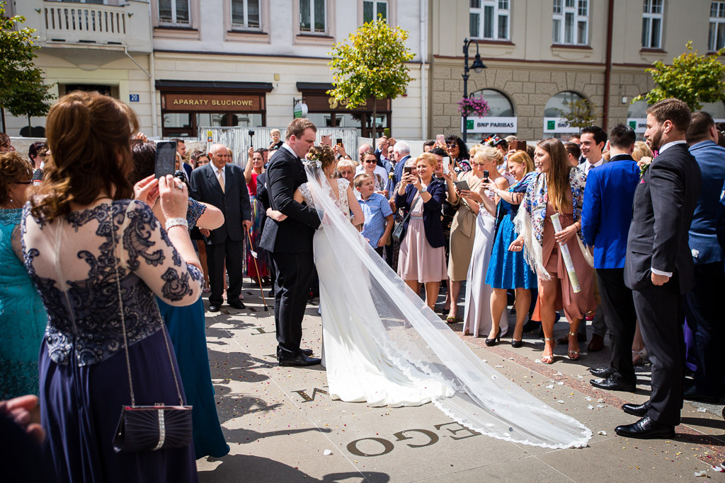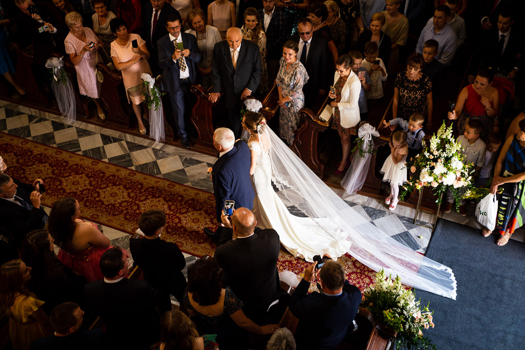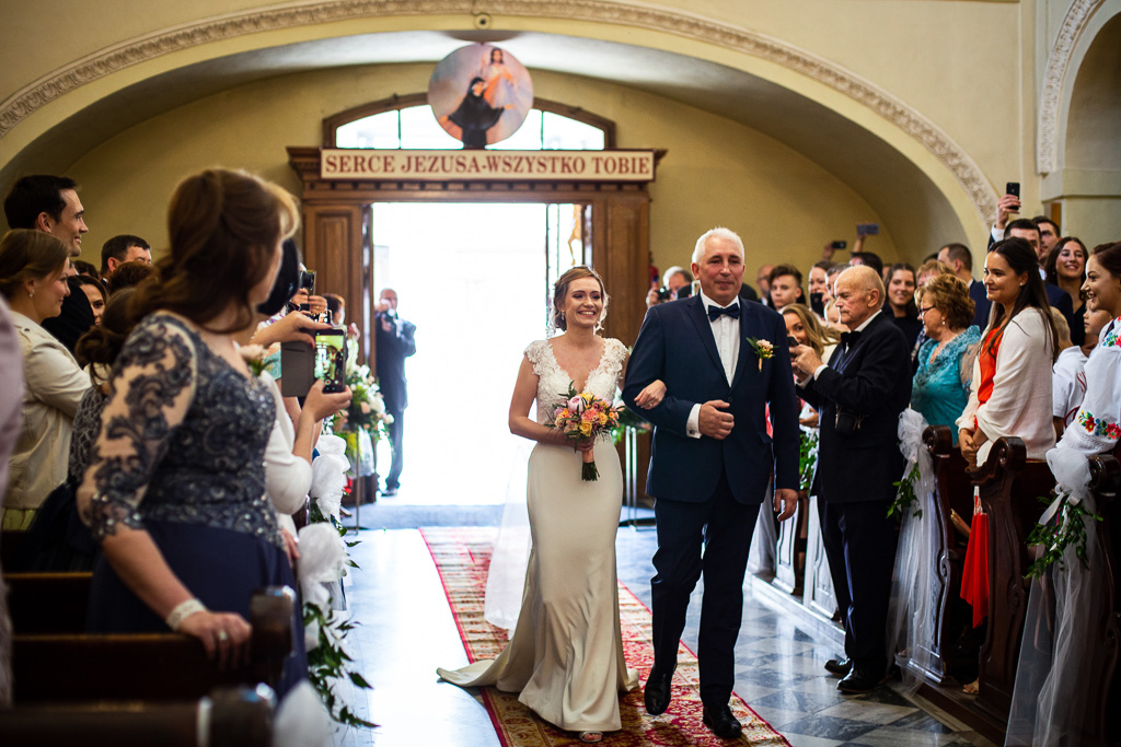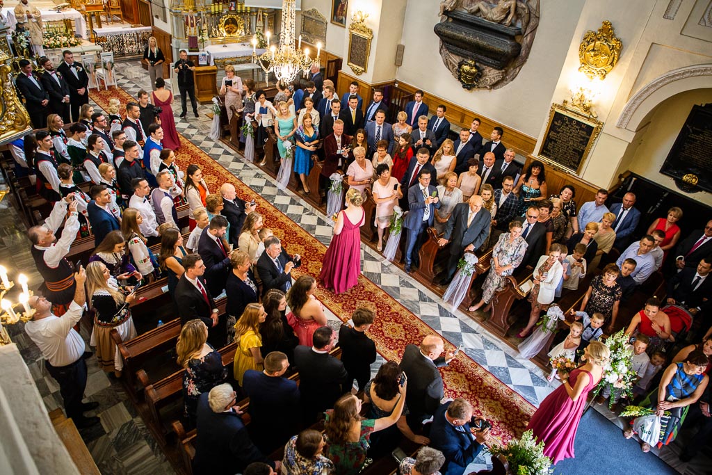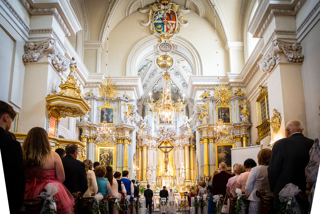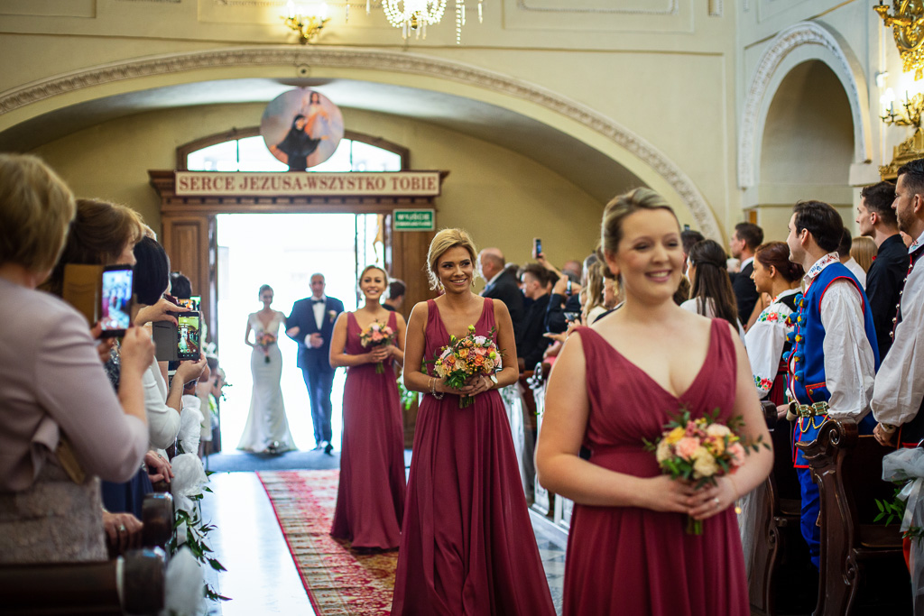 Wejście do kościoła jak malowane, kościół przytłacza swoim pięknem, momenty zamyślenia, dłonie złączone w uścisku, spojrzenie, słowa, uśmiech, pocałunek i… Gruchnęły oklaski. Widać było, że to nie tylko Apolonia i Robert cieszyli się ze swojego ślubu ale i rodzina i cały tłum przyjaciół, których przywieźli z bardzo odległych nam miejsc. Wspaniały widok!