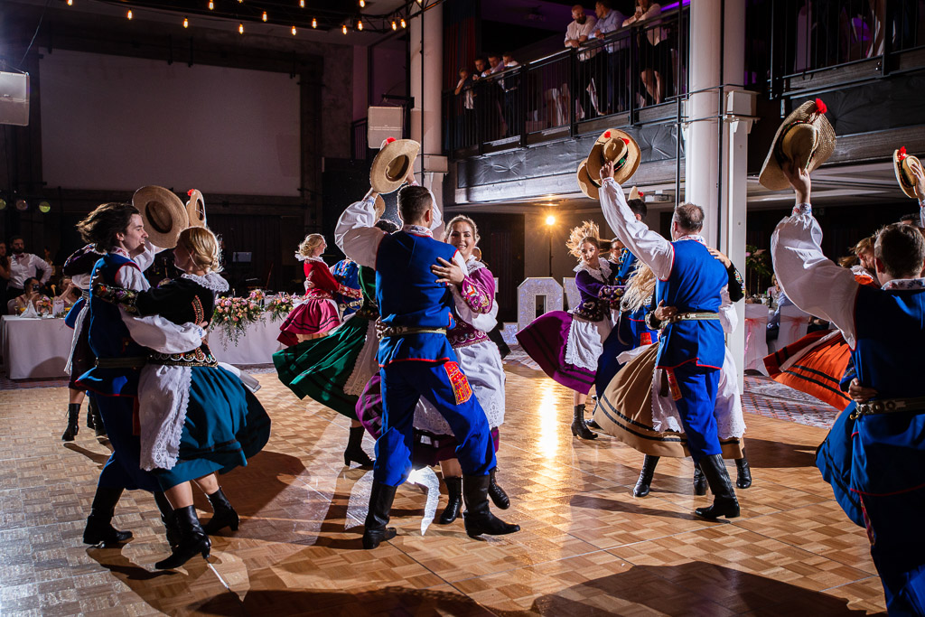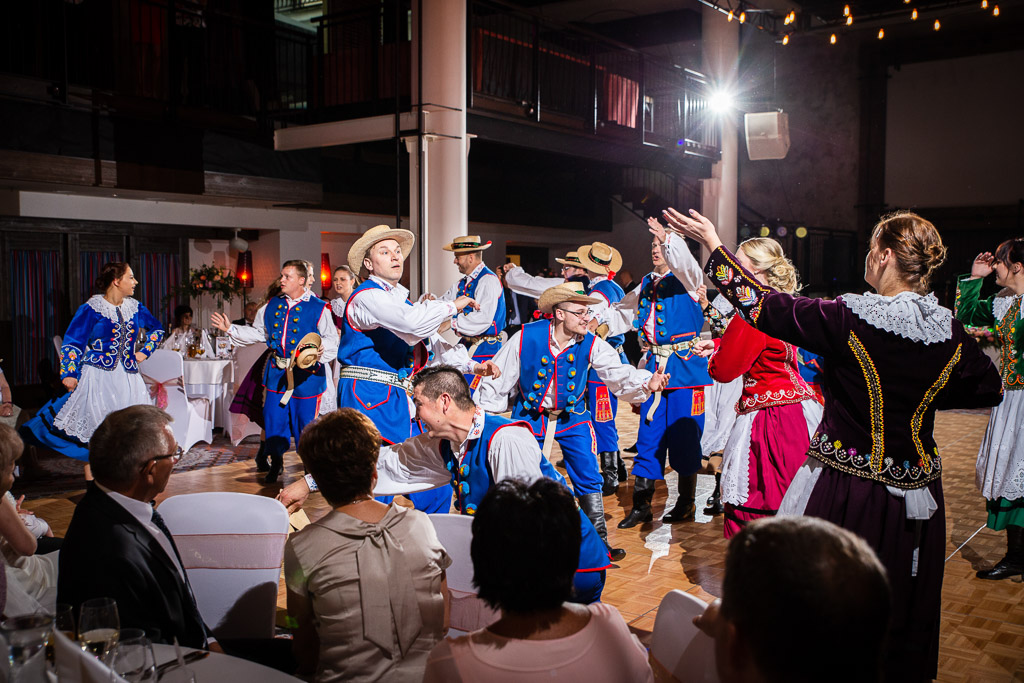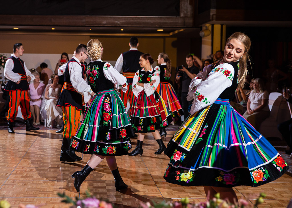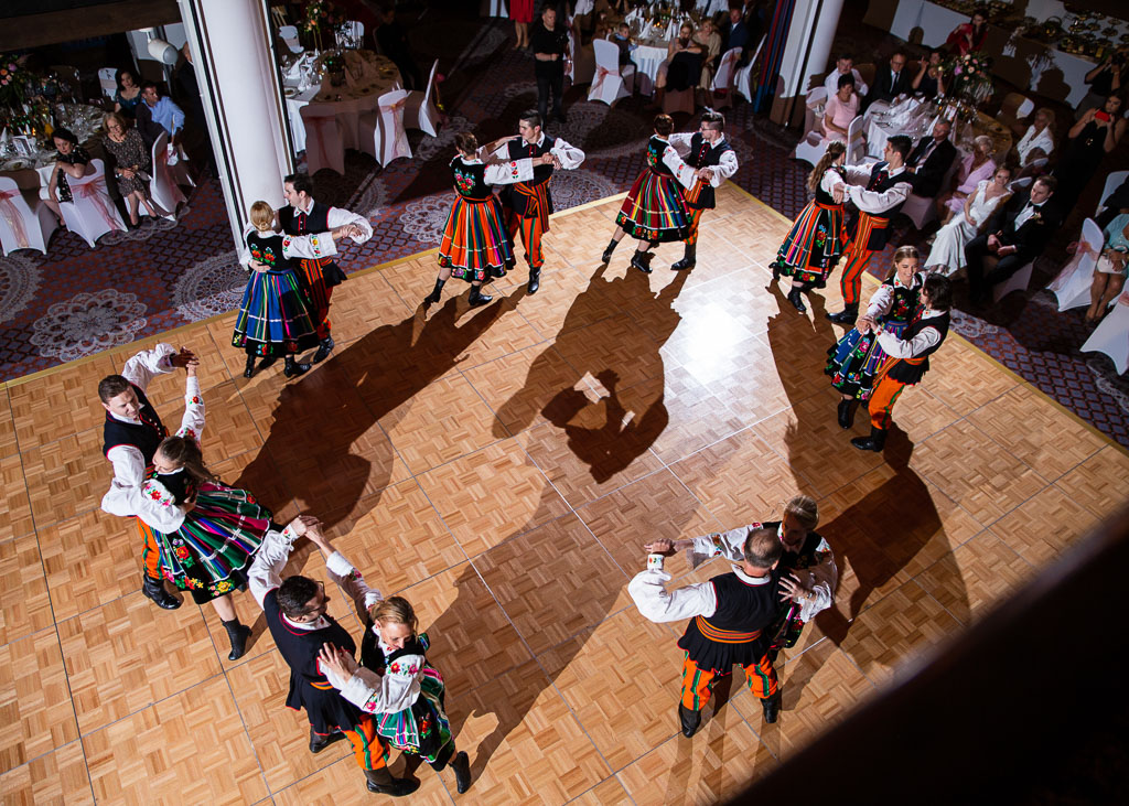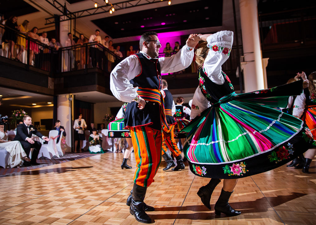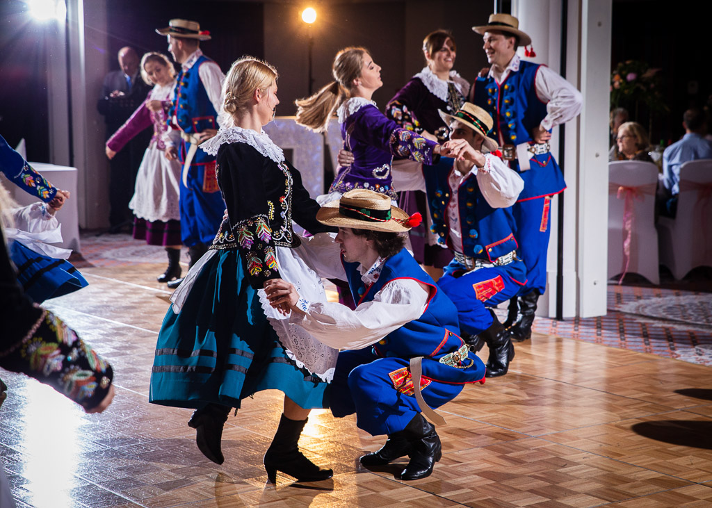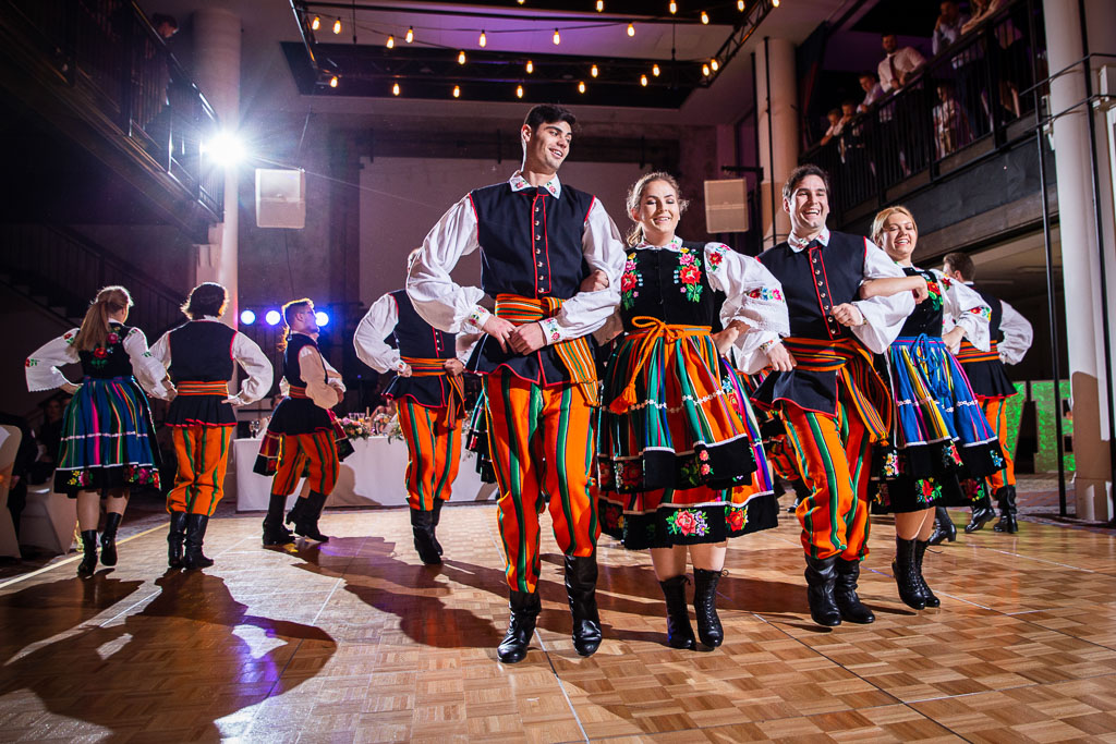 Po zaspokojeniu apetytu przyszedł czas na próbkę tego co Ci ludzie kochają najbardziej – pokaz tańca folklorystycznego zespołu „Syrenka Sydney”. A nawet dwa pokazy. Tutaj trzeba było nie zapominać o fotografowaniu, bo nawet dla nas – duetu fotografów, ciężko było się skupić przy tak kolorowym, dynamicznym i idealnie dopracowanym występie. Folkowe wesele ma to do siebie, że jest na nim kolorowo – a jak! Rzeszów tego jeszcze nie widział!