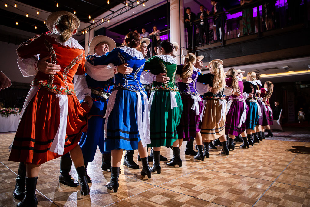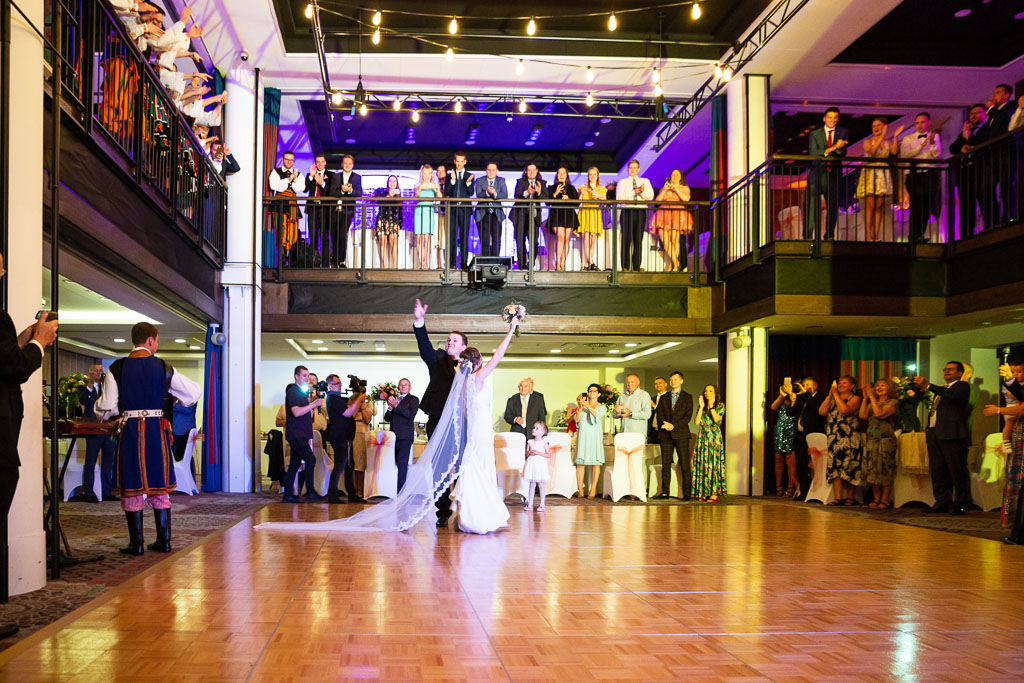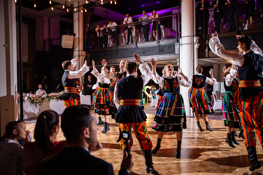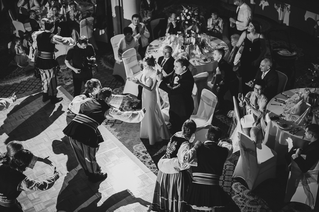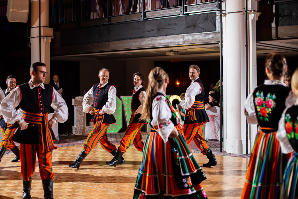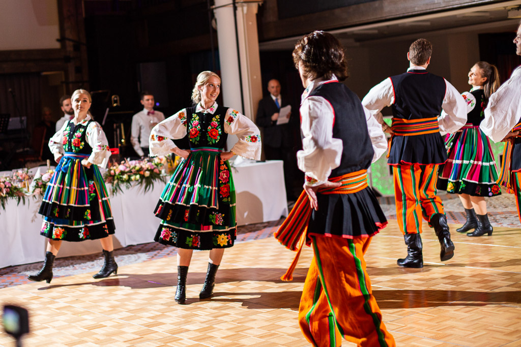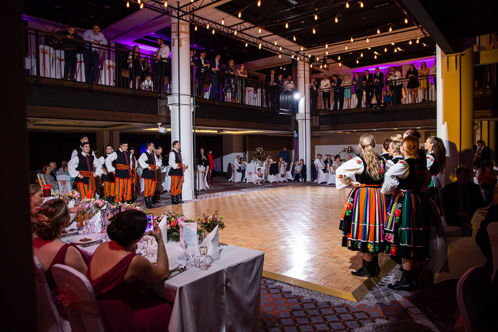 Po zaspokojeniu apetytu przyszedł czas na próbkę tego co Ci ludzie kochają najbardziej – pokaz tańca folklorystycznego zespołu „Syrenka Sydney”. A nawet dwa pokazy. Tutaj trzeba było nie zapominać o fotografowaniu, bo nawet dla nas – duetu fotografów, ciężko było się skupić przy tak kolorowym, dynamicznym i idealnie dopracowanym występie. Folkowe wesele ma to do siebie, że jest na nim kolorowo – a jak! Rzeszów tego jeszcze nie widział!
